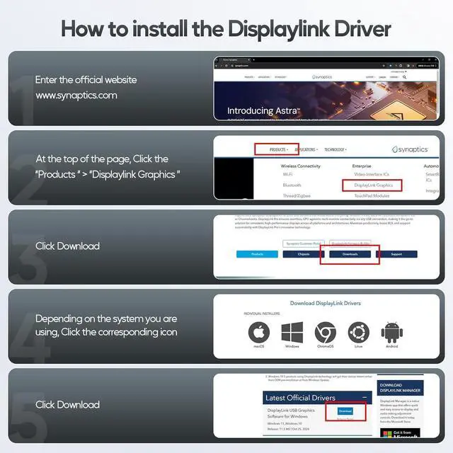 Compatibility :The mac hdmi adapteris compatible with Mac M1/M2/M3/M4 or Other intell MacBook, Windows or Chrome OS, Ubuntu, and Android.Note: Linux/Unix is not supported. (Compatibility: Please cheeck with DisplayLink website.)Note: must download the driver before using