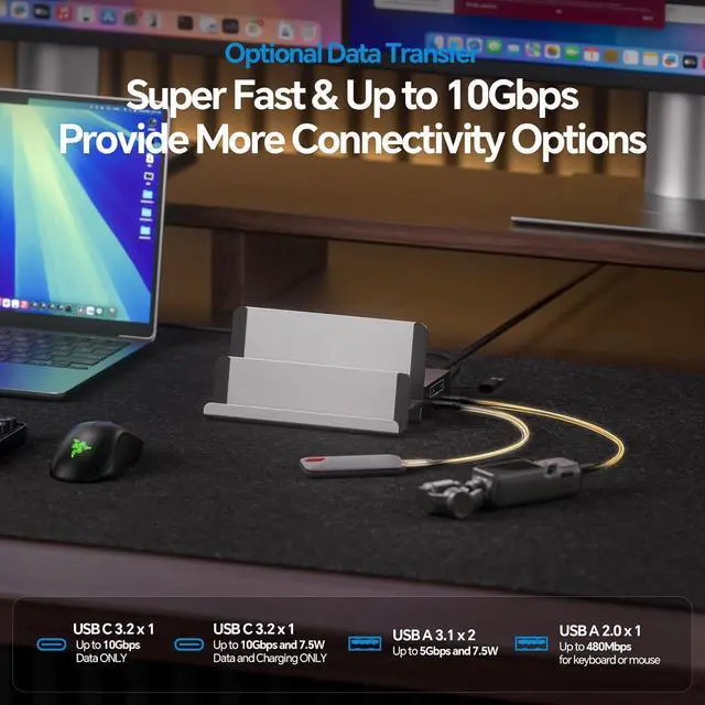Super-Speed Data Transfer - This triple-display laptop docking station provides 2 x USB C 10Gbps and 2 x USB-A 5Gbps ports, supporting transfer videos and other files within seconds. while the USB-A 2.0, SD/TF, Ethernet, 3.5mm audio, 2 USB-C PD output ports can connect various peripherals, and access gigabit ethernet. Note: The Macbook Pro Docking Station does NOT support display via any of the USB-C ports