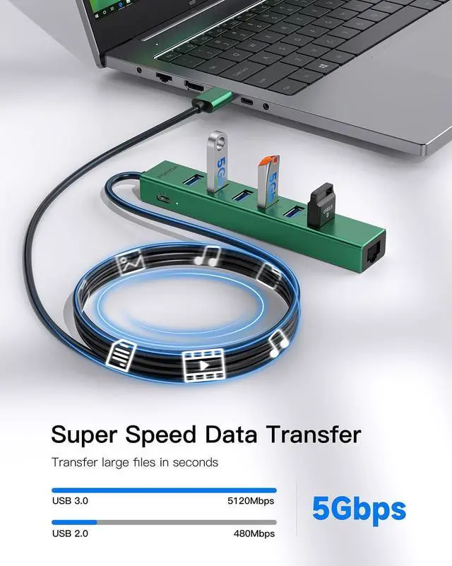 This usb to ethernet hub powered hub is USB 3.0 splitter for keyboard, mouse, HDD, flash drive, camera, printer, scanner and other USB devices, it is a good USB 3.0 hub for laptop, PS4, Xbox one, phone, PC and more, backward compatible with USB 2.0 and 1.0