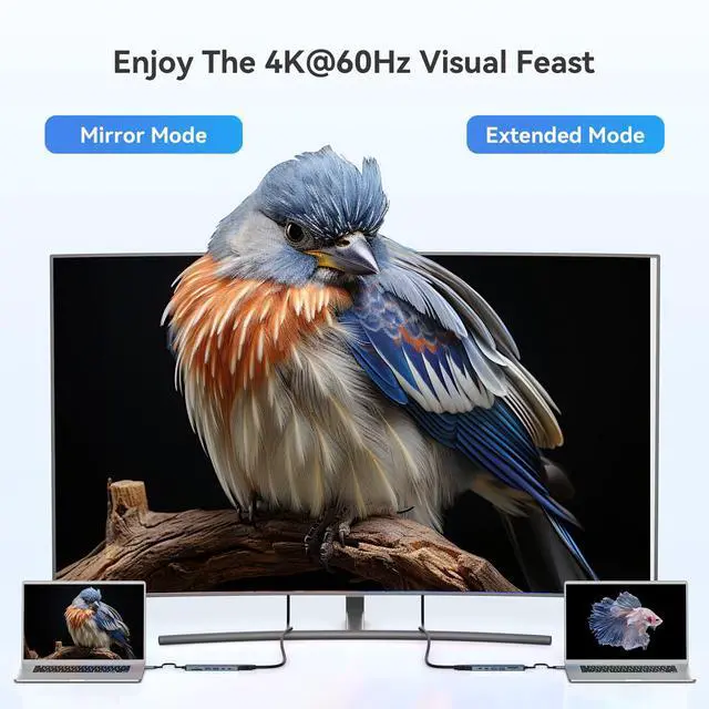 Enjoy Crystal-Clear 4K@60Hz Video: MacBook Pro Adapter mirrors or extend your screen with USB C hubs HDMI port and directly stream 4K UHD @60Hz video to HDTV, monitor or projector to see all in sharp and glorious detail, perfect for photographer and video editor