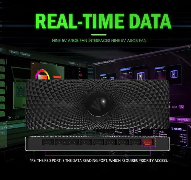 2. Each port can control up to 180 total RGB LEDS for spectacular system, but if the argb hub connect 9 argb fan at the same time, each port only support 120 RGB LEDS.