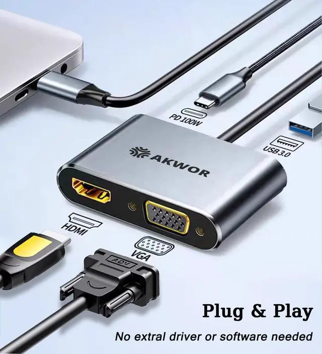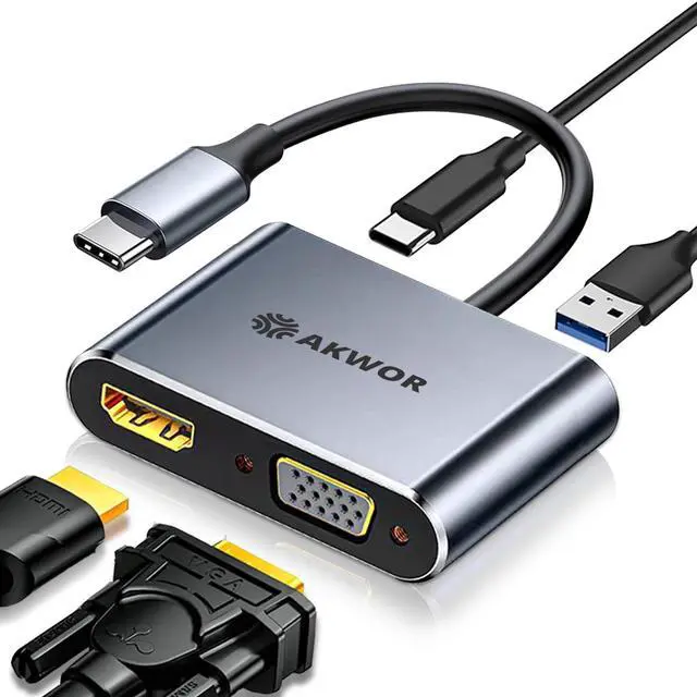 AKWOR 4 IN 1 USB C Hub with HDMI VGA Dual Monitor