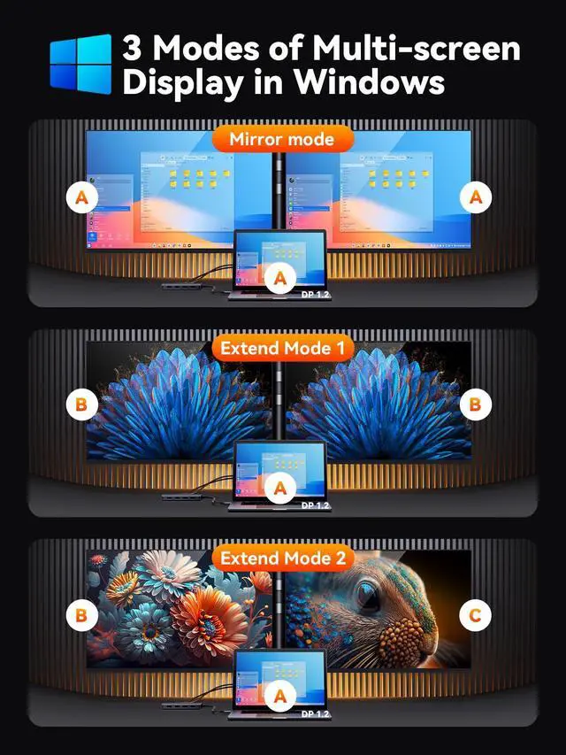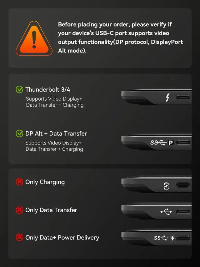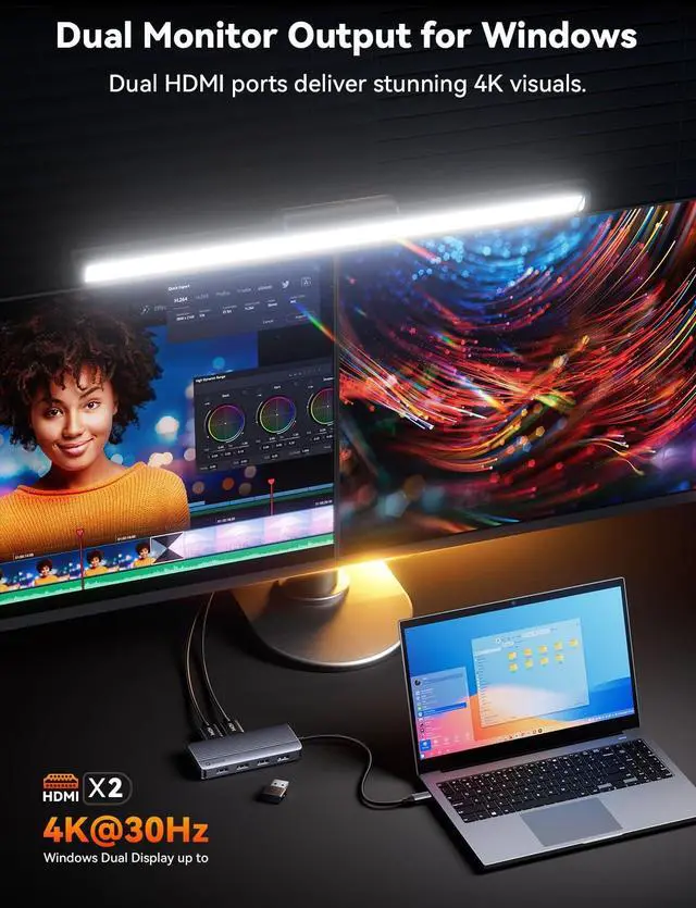 Dual HDMI DisplayThis usb c dock supports UHD 3840x2160 (4K) @30Hz display with your 4K monitor, TV or projector. The dual hdmi docking station will greatly optimize your visual experience and improve efficiency. Note: Due to MacOS limitations, all extended monitors will display the same content when connecting a MacBook.