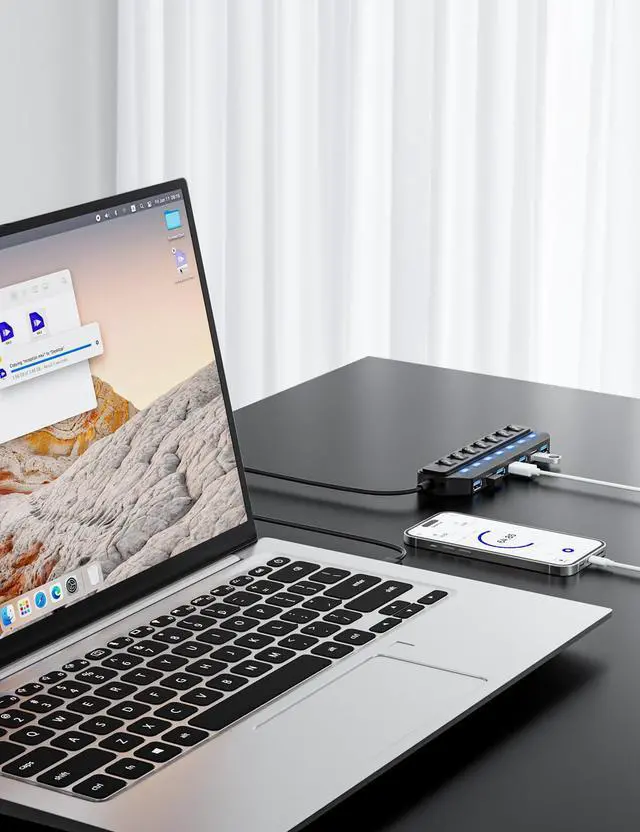 [WIDE COMPATIBILITY] USB Hub is compatible with the most operating systems: Windows XP/Vista/7/8/10/11; MacOS-8/9/X, UNIX, Linux and offers fast PLUG-AND-PLAY installation.