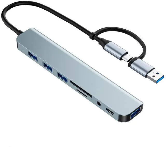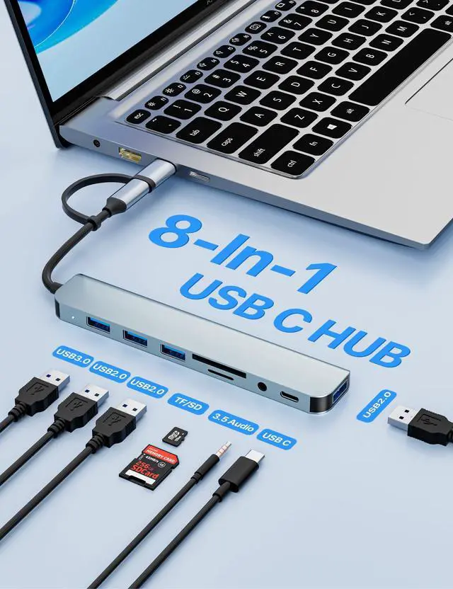 USB C/USB Hub Multiport Adapter, USB 3.0 Hub Aluminum 8 in 1 USB Splitter with SD/TF Card Reader, 1 x USB 3.0, 3 x USB 2.0, 1 x USB C, and 3.5 mm Audio Output for MacBook Pro Air, iPad Pro, Laptop