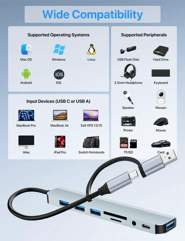 Wide Compatibility: This USB-A & USB-C hub Compatible with USB-C compatible with all PC, laptop, Such MacBook Pro/MacBook Retain/MacBook Air or Phone/Tablet with a Type C portWindows 10, MacOS X, Android, Chrome OS Google (Up), Linux