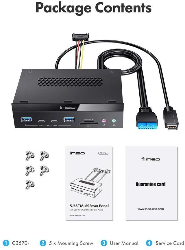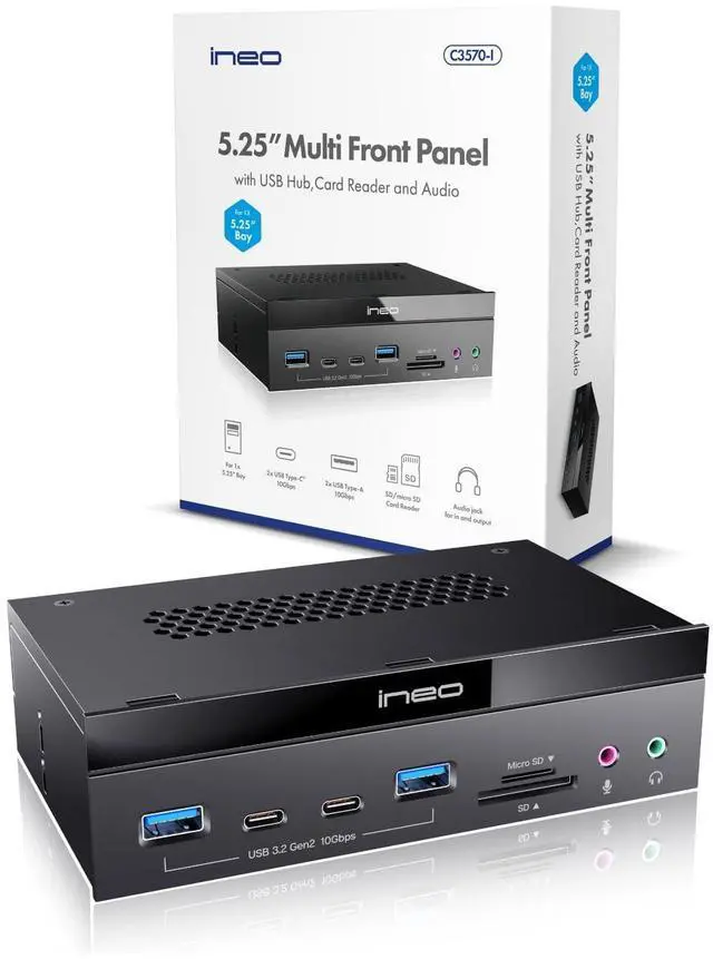 ![]() ineo 5.25" 10Gbps USB 3.2 Front Panel Card Reader with Audio Ports - SD/micro... | ![]() Ineo 5.25" Front Panel USB 3.2 Gen 2 Hub - 2X 10G USB-C, 2X 10G USB-A, 1x USB... | |