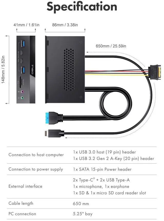 ![Main image of 5.25" 10Gbps USB 3.2 Front Panel Card Reader with Audio Ports - SD/microSD Internal Reader, USB3.2 Type-E Key-A 20-Pin & USB3.0 Header, 15-Pin SATA Power[3570I]](https://c1.neweggimages.com/productimage/nb640/C595D2603290XNJLM19.jpg)