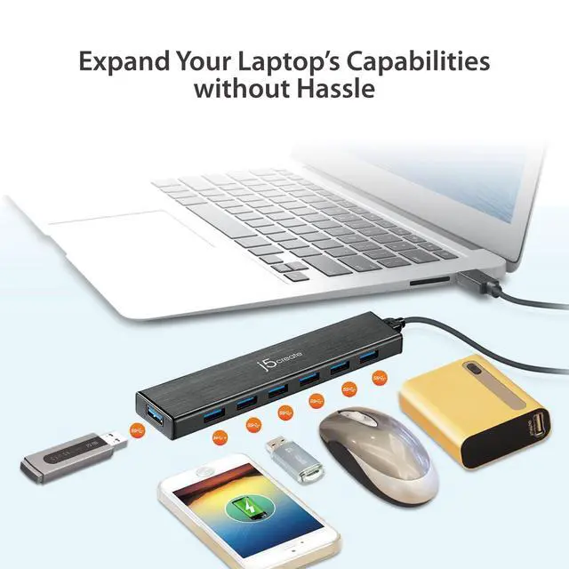 ![Alt view image 6 of 7 - 7-Port Powered USB 3.0 Data Hub with 3.3 ft Extended Cable [20W Power Adapter Included] for Mac, MacBook, Windows, Laptop, Surface, XPS, PC (JUH377)](https://c1.neweggimages.com/productimage/nb640/C61MD2604040Y5FFL75.jpg)