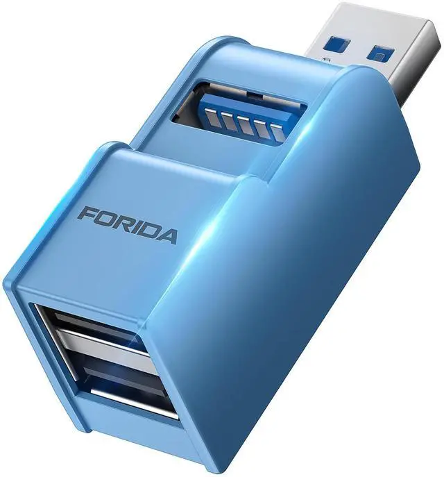 FORIDA 3 Ports USB Splitter 1 In 3 Out, USB 3.0 Extender Hub With USBA 3.0 Data Transfer Port, 2 USB 2.0 Ports Hub For Laptops, Keyborad, Mobile Hard Disk, Cars And more USBA Devices