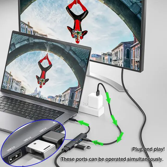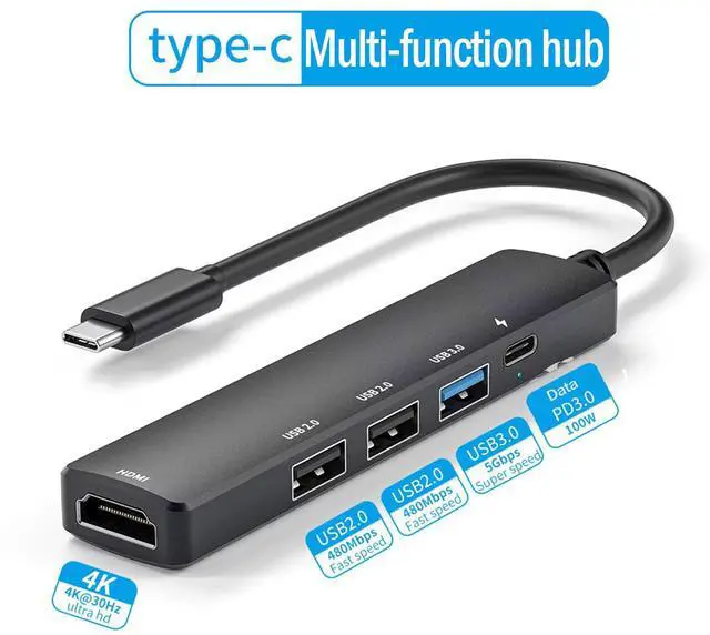 Efficient 5 in 1 USB Multipport Hub. 4K HDMI adapter, USB A 3.0 port (5Gbps), USB A 2.0 port (480Mbps) and 100W PD Charging Port. It is convenient to connect one type C plug to different devices at the same time, to solve the trouble that your device only has fewer or unsuitable ports. This intelligent USB hub has perfectly combined the most functions you need,as watch movies,gaming,reading and working etc. Please note that the C port of the Host device needs to support. The compact design ensure firmly connect to your devices after bended and twisted,save your desk space, leaving room for all those accessories you`ll be plugging in.