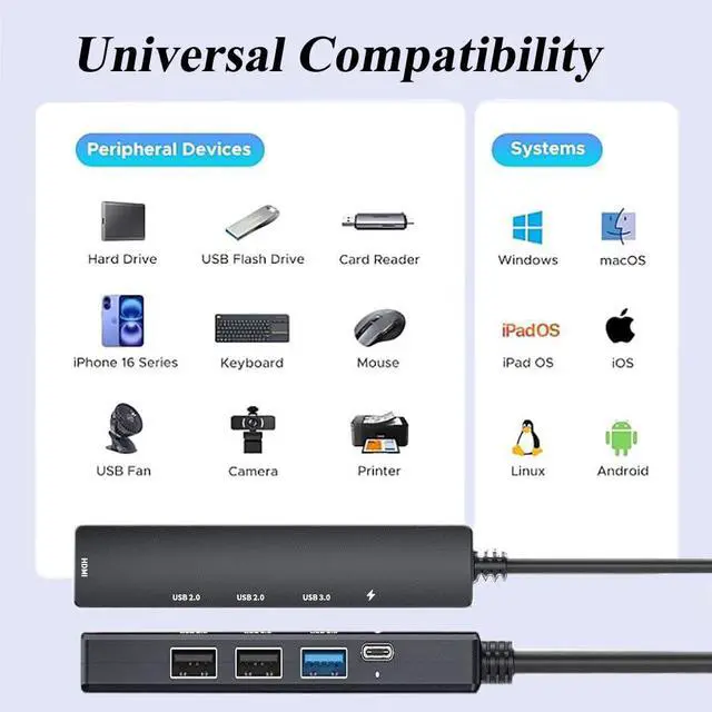 | Compatible Device | MacBook Air/ Pro/ M1/ M2, Chromebook, XPS | PC, TV/ HDTV, Laptop to Monitor, Projector | Laptop | Laptops, Tablets, Smartphones | Laptop |