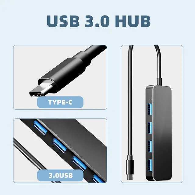 This USB-C hub Turns one USB-C port into four USB 3.0 ports(Up to 5 Gbps),4 USB 3.0 ports can be used simultaneously, which is Perfect for extending port space on your computer.