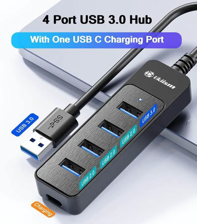 Ukiism 4 Port USB Hub with USB-C Powered Port, Powered USB 3.0 Hub, USB Extender, USB Splitter, USB Multiport Adapter for Laptop, PC,Car, PS4/5, Xbox, and More
