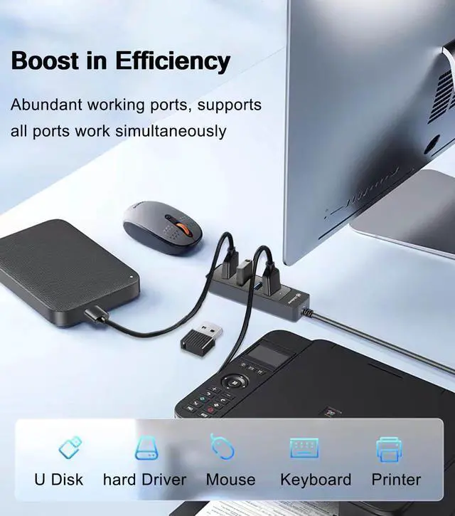 Wide Compatibility: Widely Compatible with USB A port Laptop/PC/Desktop, Car, XPS, PS4, Xbos and More USB enable devices, and Works on Windows, ChromeOS, Linux. Perfectly solve the problem of insufficient USB interfaces on your device, greatly improving daily work efficiency.