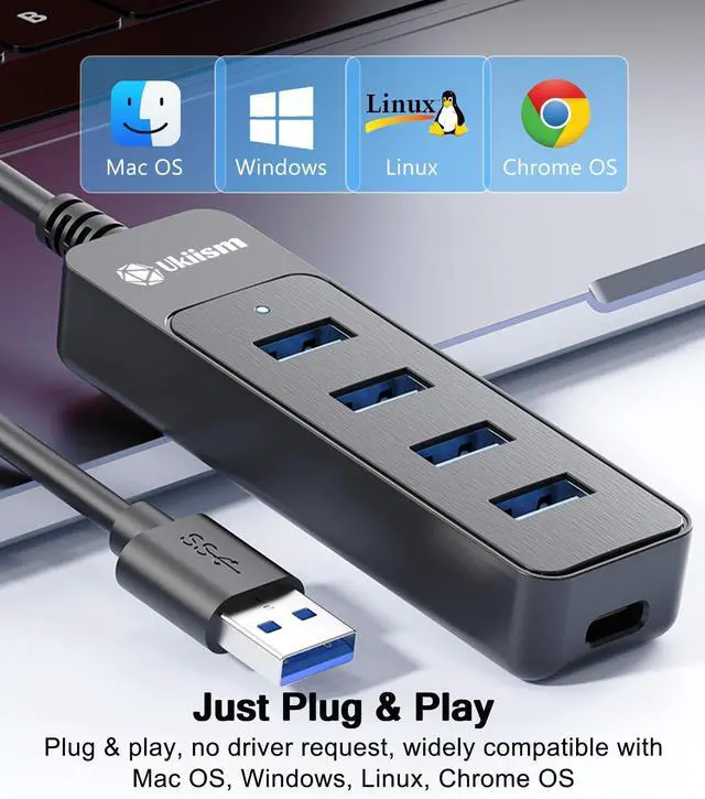 Multiport USB Extender: This USB 3.0 Hub extends your device with 4 additional USB A ports, backwards compatible with USB 2.0 / 1.1. ideal for connecting USB peripherals such as flash drive, mouse, keyboard, printer. No need to install drivers, plug and play. Its very portable, suitable for business travel.