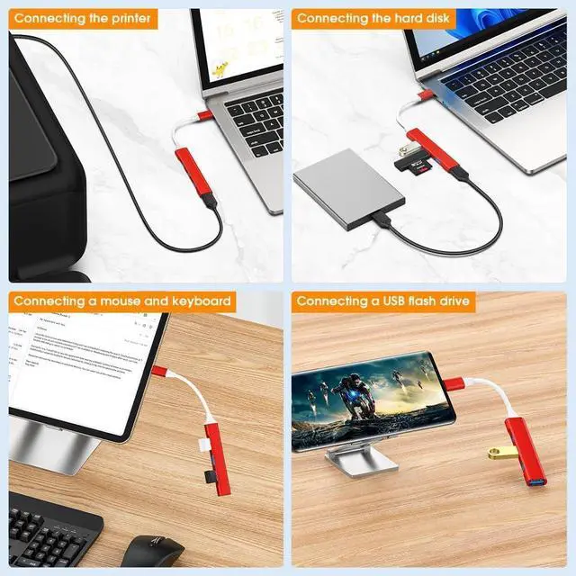 Slim Compact USB C Adapter with 4 USB Ports for Work, Travel, and Daily Use