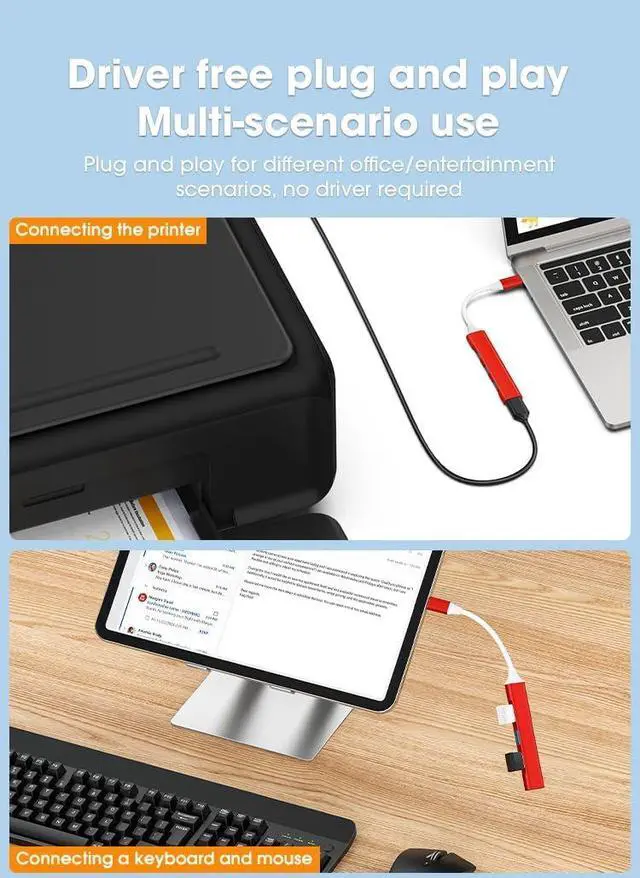 Plug-and-play support means no drivers are needed, making it easy to connect and get started right away. Compatible with macOS, Windows, and Chrome OS, this USB C adapter is a dependable addition to any modern setup. The premium aluminum shell adds durability, supports heat dissipation, and gives the hub a clean, modern look for daily use. Built-in over-current and short-circuit protection help support safe, stable performance across connected devices. Available in red, silver, black, pink, royal blue, light blue, and grey, this USB C adapter hub combines versatile connectivity, compact design, and modern style for laptops, tablets, and other USB-C devices.