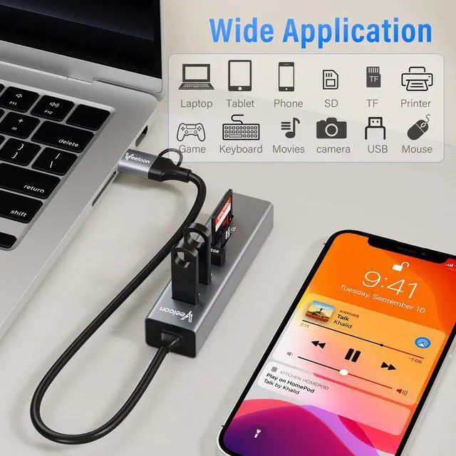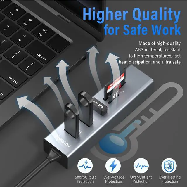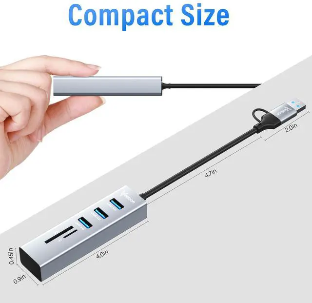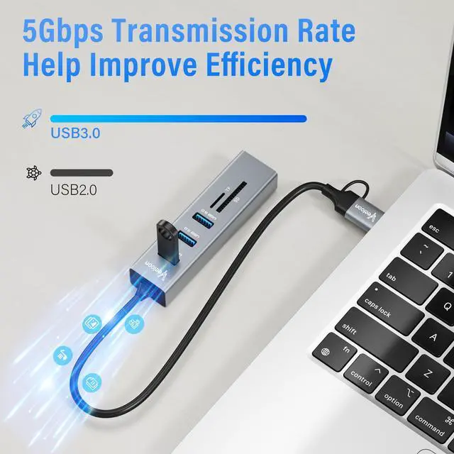 Equipped with efficient USB 3.0, it provides stable data transfer at 5Gbps and is compatible with 2.0/1.0. You can transfer movies, photos, and files at speeds of up to 5Gbps in just a few seconds. Plug and play, no driver required, supports simultaneous operation of 3 ports, enhancing your work efficiency.