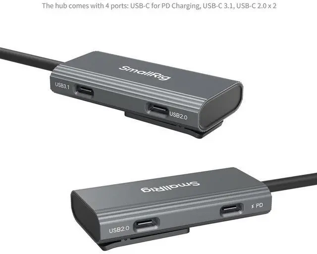 Why choose the SmallRig 4-in-1 USB-C Hub PD 100W with Audio Adapter for your professional video shooting needs? This versatile and compact hub, model 4598, is designed to enhance your mobile filming experience by providing seamless connectivity and power management. Equipped with a high-power PD 100W charging port, this hub ensures your devices stay powered throughout your shoot. The USB-C 3.1 interface offers fast data transfer speeds, while the two USB-C 2.0 interfaces allow you to connect essential USB-C accessories such as microphones and headphones, optimizing your audio and video setup.