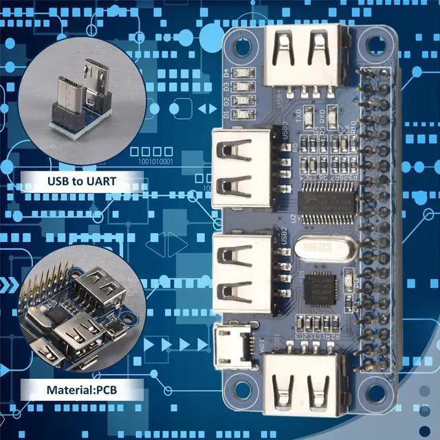 4 USB expansion ports, compatible with USB2.0 / 1.1 transmission. USB to UART for Raspberry Pi for serial debugging