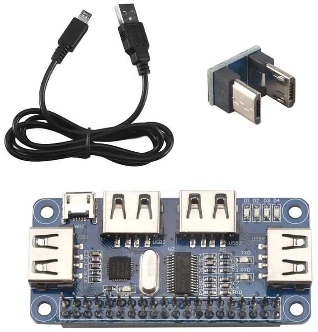 4 Ports USB HUB HAT For 3 / 2 / Zero W Extension Board USB To UART For Serial Debugging Compatible With USB2.0/1.1,blue