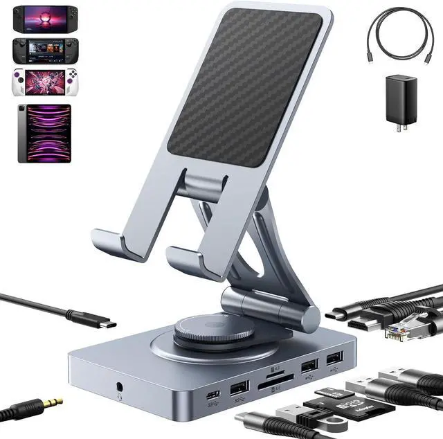 Versatile USB C Docking Station for iPad (USB-C), 11-in-1 with SD TF 4.0 Reader, 4K@60Hz HDMI, RJ45, Audio, USB A, USB c, Rotatable, Also for Tablet, Steam Deck, ROG Ally, Legion Go, with 65W Adapter