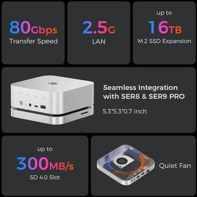 *Note: The Mate SE-A is fully compatible with Beelink SER8/SER9 PRO for both optimal performance and visual harmony. Other Beelink SE series users will need to purchase a Thunderbolt 4, Thunderbolt 5, or USB4 cable separately for full connectivity