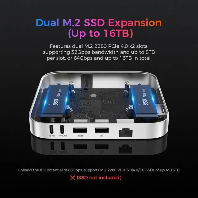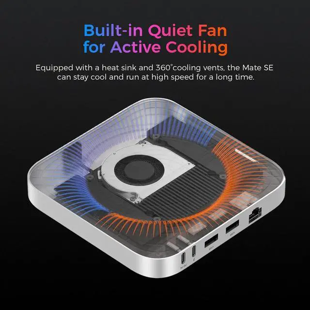 Comprehensive Ports: The Mate SE-A offers dual M.2 SSD slots, 80Gbps USB-C*1, USB-A 3.0*2, 2.5Gbps LAN*1, SD 4.0*1, and USB-C(PD3.0 power port)*1, providing all the connectivity for fast data transfer, networking, peripherals, and device charging