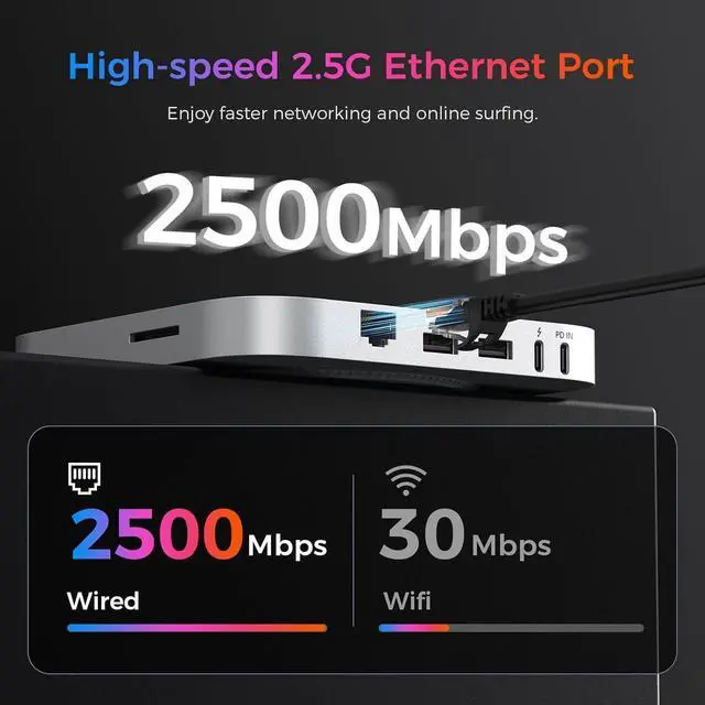 Seamless Connectivity with 2.5G LAN, SD 4.0, and USB-A: Equipped with a 2.5G Ethernet port for stable high-speed networking, an SD 4.0 card reader (300MB/s), and USB-A 3.0 ports for peripherals, ideal for photographers and content creators