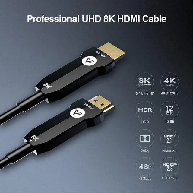 8K UltraHD HDMI Cable: AV Access 8K AOC cable supports ultra HD resolution up to 8K@60Hz,4K@144Hz, 4K@120Hz and 4K@60Hz. It supports HDR, 3D effect and Dolby Vision & Atmos.