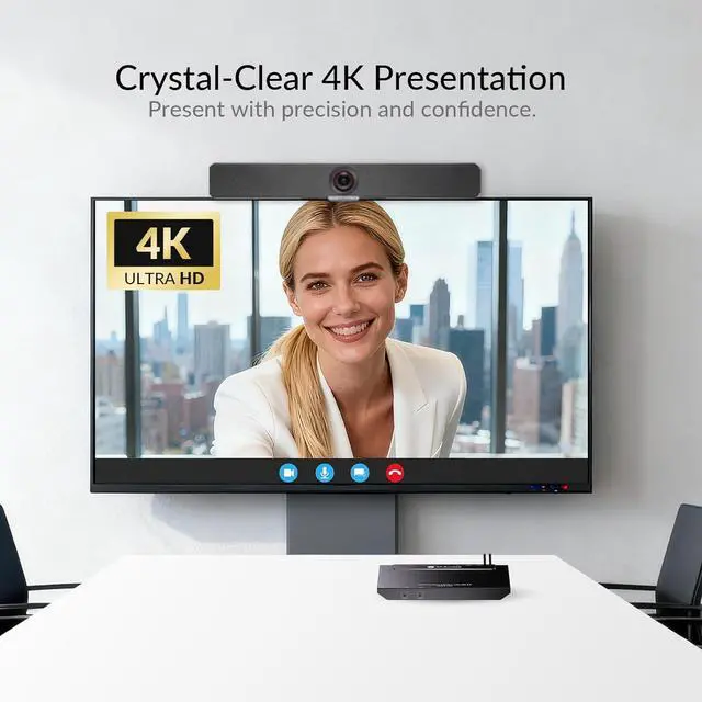 Efficient Conference Meeting Experience: No software or driver is required; just plug and play. Connect the presentation system to your room PC or laptop via USB-C/HDMI port. Make a wonderful local 4K presentation or hold an effective remote conference in your small/medium meeting room or huddle room.