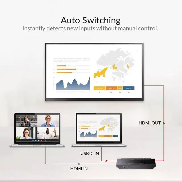 Built-in Smart Automatic Switching System: No extra manual operation required. Once the system detects a new source input from its HDMI or USB-C port, it will automatically switch to that source. Dont need to waste time pressing control buttons any more. All of your team members can enjoy a smooth presentation and collaboration experience.
