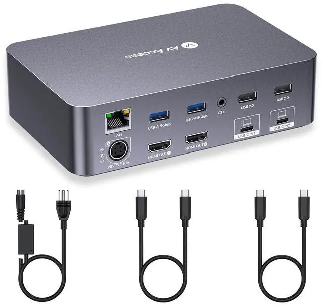 Package Include1x iDock C20 USB-C KVM Switch, 1x Power Adapter (20V 10A), 2x USB-C to USB-C Cable(1m/3.2ft), 1x User Manual.