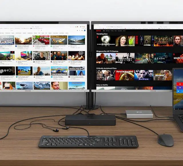 A universal docking station that can be used with any laptop as it supports connection to all popular ports: USB 3.0, USB-C and Thunderbolt 3/4, while supporting all current operating systems. The station supports up to 2x external monitors that you can connect via HDMI and DVI ports. 6x USB ports (two of which USB 3.0), reliable and fast internet connection thanks to integrated LAN port and audio input and output support. The docking station offers you both maximum work efficiency thanks to the expandability of the connectors as well as a beautifully tidy desk.