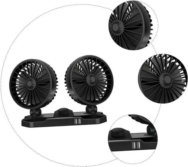 Car electric fan:double heads, double USB port structure design, balance, small vibration,car cooler fan