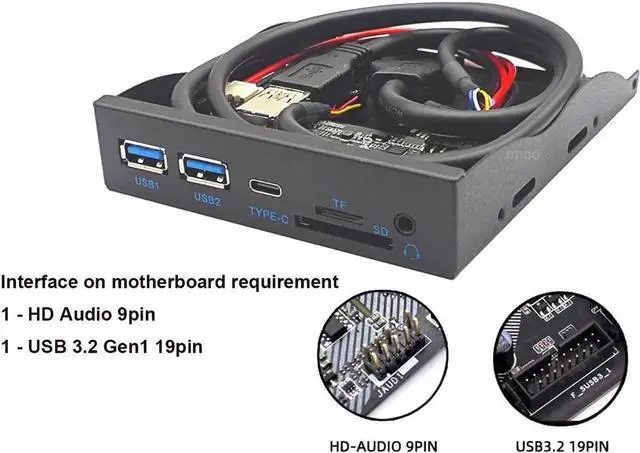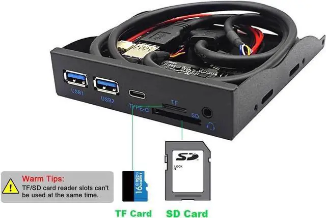 3.5 inch USB Hub Front Panel & Internal Card Reader - Convert your 3.5 inch floppy disk drive space into 1x Type-C & 2 USB-A ports, 1 SD slot, 1 Micro SD slot. Increase the scalability of desktop computers to meet various needs.