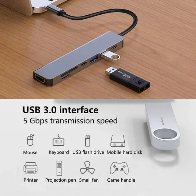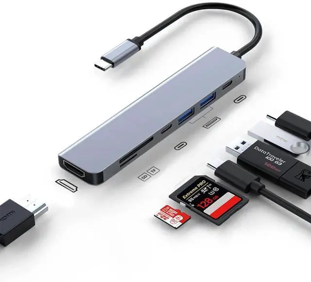 - [Wide compatibility] 7-in-1 USB C Hub Compatible with 2016-2021 MacBook/Pro, Macbook air/Mac mini, iPad, Dell XPS13/15, G3/G7, HP 4Pro, HP Elitebook, Huawei Mate Book, etc. Widely used in the latest Samsung Galaxy S8, S9, S10, Huawei Mate10/20/30, etc