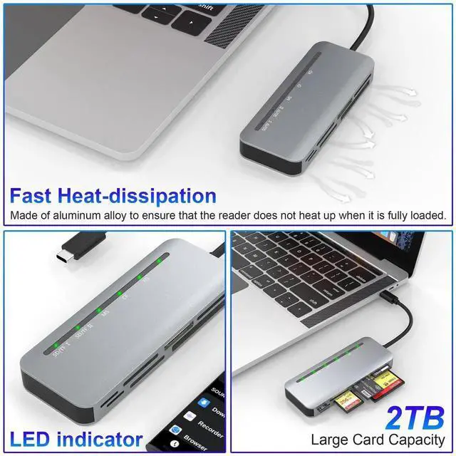 Aluminum USB C Multi Card Reader with 7-Slot : SD*2 + Micro SD*2 + CF + XD + MS