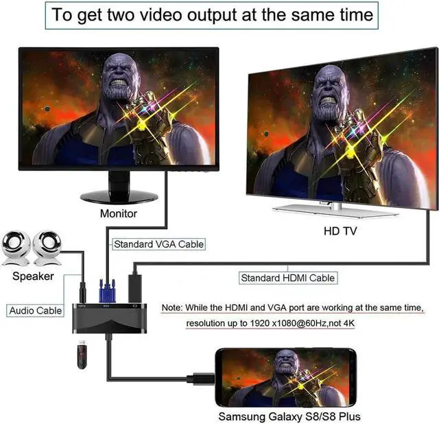 JAENFONG USB C to HDMI VGA USB with 3.5mm Audio Hub Adapter, 4 in 1 USB Type C Multiport Dongle with UHD 4K HDMI VGA USB 2.0 3.5mm Audio Adapter for Projector,MacBook,Google Chromebook Pixel