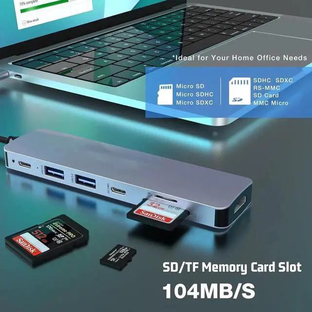 7-in-1 USB C Hub: Unleash more potential of your laptop USB-C ports with 4K HDMI, 5Gbps USB-C and 2*USB3.0 data ports, SD/MicroSD card reader, and 100W power delivery.