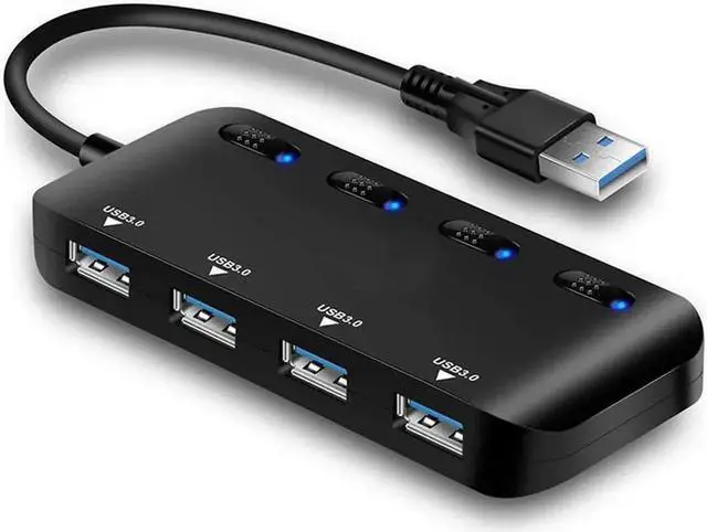 4-Port USB 3.0 Hub with Individual Power Switches and LED Indicators