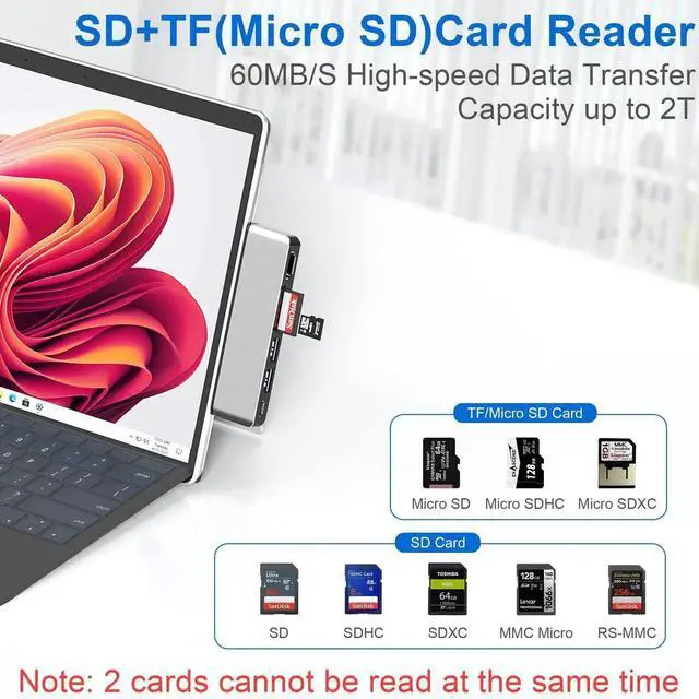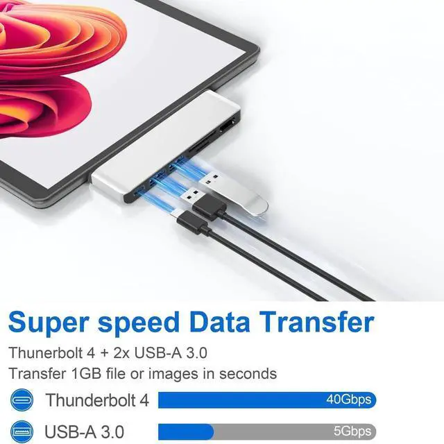 Surface Pro 9/Pro 10/Pro 11/Pro X Hub Docking Station with 4K HDMI, USB-C Thunerbolt 4 (Display + Data +100W Charging), 2x USB 3.0 Ports, TF (Micro SD) Card Slot, SD Card Slot
