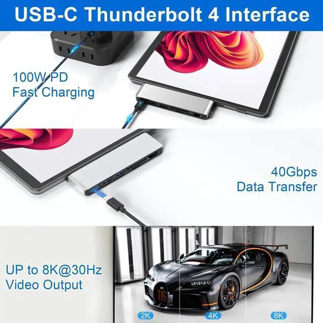 Thunerbolt 4 100W PD ChargingThis Surface Pro 9/Pro 10/Pro 11/Pro X accessories support USB C 100W pass-through power delivery.