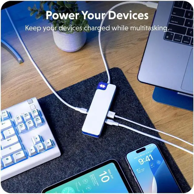 HyperDrive Flex 8-Port USB C Hub Multiport Adapter for Crisp Visuals, Fast Transfer, Charging HDMI 4K30Hz, 100W Power Delivery, 5Gbps, 2X USB-A, SD, MicroSD, Audio Jack (Blue)