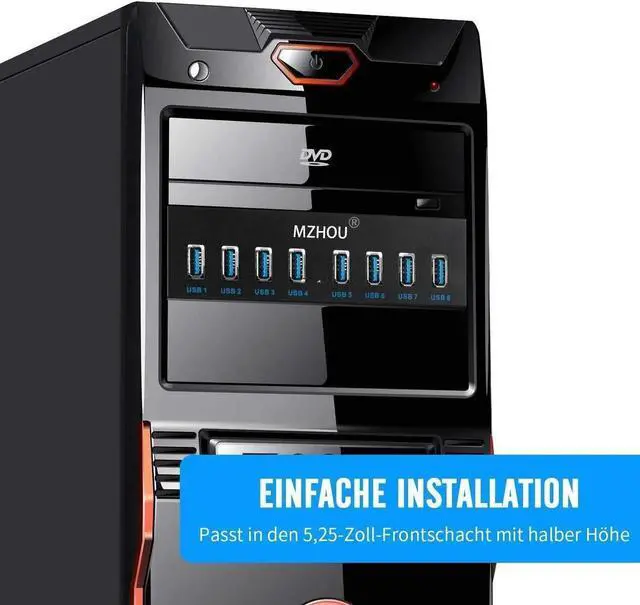 1. Simply connect it to the motherboard using a 19-pin socket on the control panel. As a result, eight front USB 3.0 interfaces are installed in a standby optical drive position.