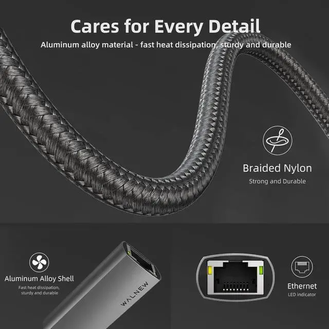 [USB C to Ethernet Adapter] The Gigabit Ethernet Adapter offers smooth and reliable connection between USB-C devices and wired network. Obtain an Ethernet data transfer rate of up to 1000Mbps networks and downward compatible with 100/10/1Mbps Ethernet networks. With indicator light, you can check the connection status