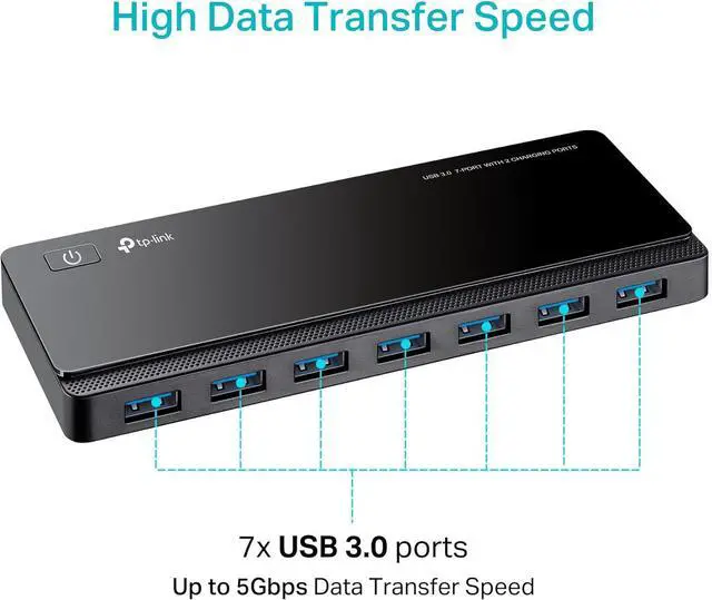 USB 3.0: USB 3.0 ports offer transfer speeds of up to 5Gbps 10 times faster than USB 2.0. This 7-port USB 3.0 data hub can instantly expand 1 USB 3.0 port to 7 external USB 3.0 data ports for keyboard mouse printer hard drivers and other USB devices.