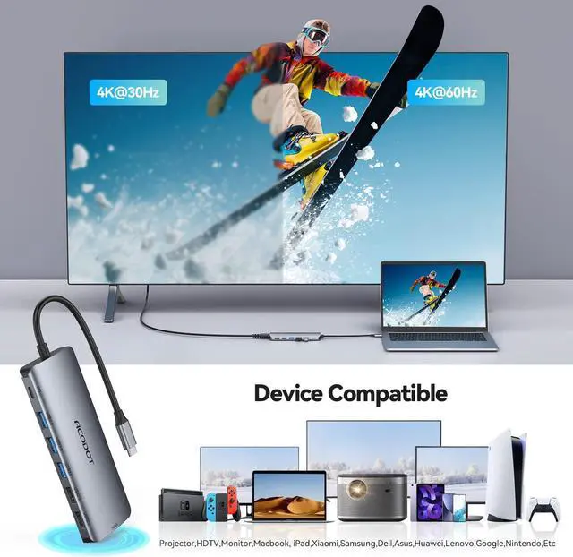 ?? [?? -???? -???????? -???????? ] Acodot Usb C Hub multiport adapter expands a single USB-C port to 9 ports (1 * HDMI 4K@60HZ 3 * USB 3.0 2 * USB 2.0 1 * PD charging 1 * TF card slot 1 * SD card slot). Plug and play no software drivers or complicated installation required.??? [???? @???????????????????????????????????? ] Mirror or extend your screen with the HDMI port to HD TV monitor or projector.