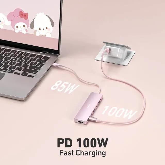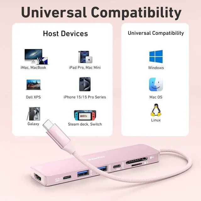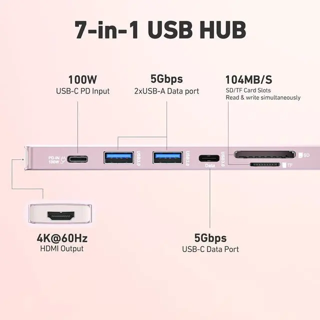 Powerful USB-C HUB with 18 Month warranty BENFEI USB Type-C HUB with super-soft and knot-free silicone woven design cable meets most mobile office needs. Compact lightweight stylish and powerful portable USB C Hub equipped with 1 x HDMI port 1 x 100W charging 2 x USB 3.0 ports 1 USB-C data port SD/TF Card reader. 18-month warranty 24-hour response to ensure you feel at ease when using our product. Design centered on comfort and reliabilityThanks to BENFEI's end-to-end in-house cable production capability in-house PCBA and assembly capability using the industry's most advanced silicone woven design and process 20cm cable in length no knots super-soft the HUB is easy to use in all scenarios: laptop tablet stand etc. Super-soft 25000+ life cycles to meet your daily carrying and office needs. 4K Video with 100W ChargingSupports resolutions up to 3840*2160@60Hz including 2K@144Hz 1080P 720p 1600x1200 1280x1024 for high definition monitors or projectors; Support up to 90W USB C pass-through charging via Type-C port to keep your laptop powered. 10W is reserved for other interface operations. No data and video function on the Type-C port. Fast Data Access with UHS-I Card ReaderTransfer and backup your files at speeds up to 5Gbps via 2*USB 3.0 ports and 1*USB-C data port. Through SD/TF simultaneous card reader quick and easy access to photos and other media fully enjoy the transfer rates in UHS-I mode up to 160MB/sec.? It is a simultaneously card reader and can read 4 card at the same moment. Wide CompatibilityCompatible with iPhone 15 Series 2023/2022/2021/2020/2019 MacBook Pro iMac MacBook Surface Book 2 Surface Go HP Envy 13 Pixelbook Galaxy Book Galaxy S8/ S9/ S8 Plus/ S9 Plus/ Note 8/ Note 9 XPS 15 / XPS 13 Chromebook Chromebook Pixel Intel NUC and others (see detailed product description section below) ---Kindly